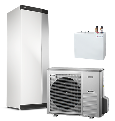 - Sisäyksikössä (VVM S320) integroitu lämminvesivaraaja (176 l), puskurivaraaja (26 l), paisuntasäiliö ja kiertovesipumput vakiovarusteena